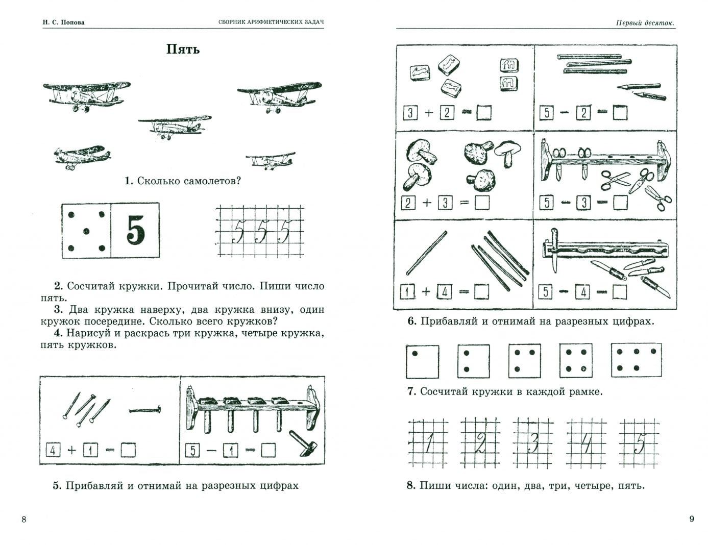 Soviet textbooks on arithmetic for primary grades were characterized by clear and precise presentation, figurative and understandable for children examples. The author of this manual is Natalia Popova, a well-known teacher and methodologist, and author of repeatedly reprinted problem books. Thanks to her unique methodology kids better assimilate the material, and the learning process becomes not a boring routine, but an exciting game. The publication contains written and oral exercises for the first hundred digits: numbering, counting and recording numbers, addition, subtraction, multiplication and division up to 20 and round tens; tasks in two actions; tasks for time. The manual is ideal for learning math from scratch and is intended for elementary school teachers and parents who work with their children independently.
