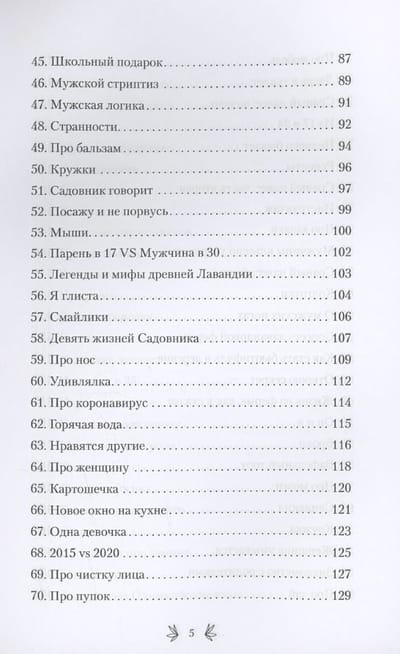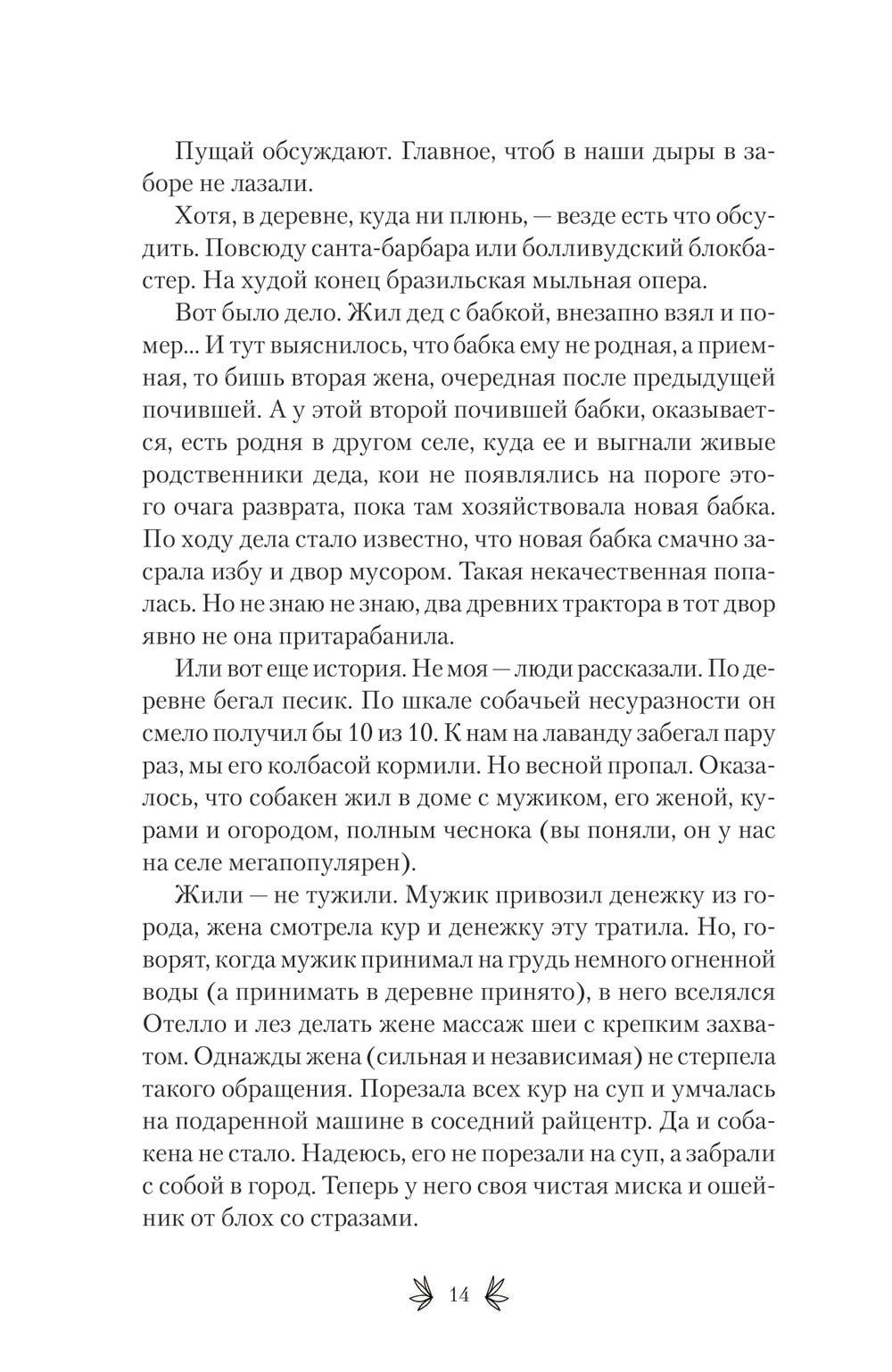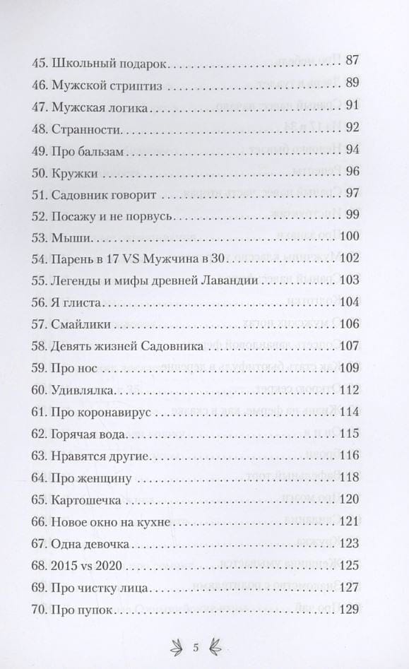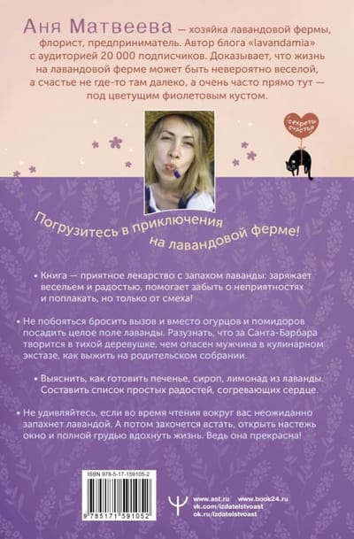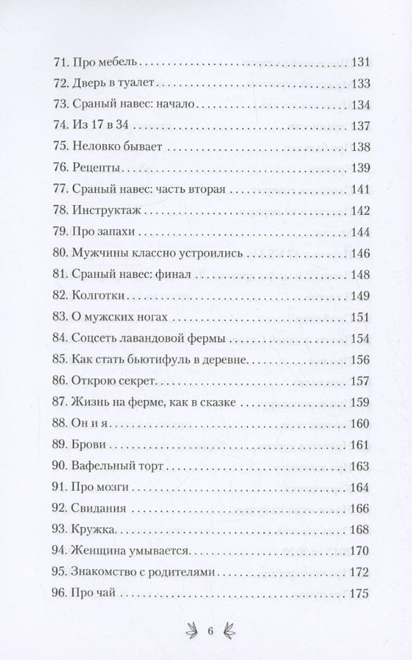 There are days when the world is falling apart, when you feel tired and irritated, when you want to grumble, beat dishes and nettles with a stick, to hell with the sea and to the arms of your loved ones. At such times, humor can be a great medicine. This book is not just funny stories about a family obsessed with lavender, it is a cozy therapy that will help you forget about troubles at least for a while. How do you start a lavender farm when all you have is a ramshackle house and a crazy dream? What Bollywood blockbusters happen in a seemingly sleepy village? What are the dangers of male striptease? What happens when a woman gets bored? Is there an instruction manual for men and why are men like bushes?