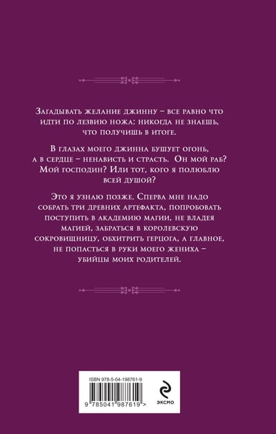 To save my family, I decided to take a desperate step and made a deal with a genie. Making a wish to a genie is like walking on a knife edge: you never know what you'll get in the end, because genies are insidious and evil towards all of humanity. There's fire raging in my genie's eyes, and hatred and passion in his heart. What awaits me? He's my slave. Or my master? Or the one I'll love with all my soul?