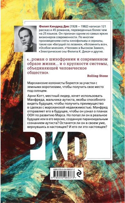 Arnie Cott, the Martian leader, enlists the help of an autistic boy to manipulate time to gain an advantage in the distribution of land rights. But the mind of Manfred, the autistic boy, is so powerful that reality begins to collapse and Arnie's own consciousness becomes distorted, as if passing through the mental filter of a paranoid child. Philip K. Dick is at the height of his creativity. One of the best novels of the prophet from California.