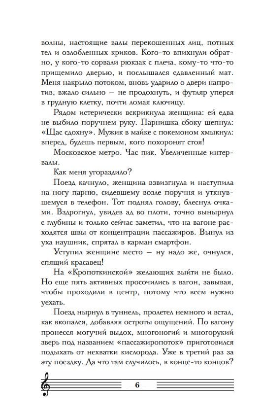 Alya Voznesenskaya is an extraordinary violinist. No, she plays no better than any other Gnesinka graduate. It's just that, unlike her colleagues, Alya has been hearing the musical embodiment of the people, objects, and phenomena around her since childhood. And if you only knew how difficult this makes life!
