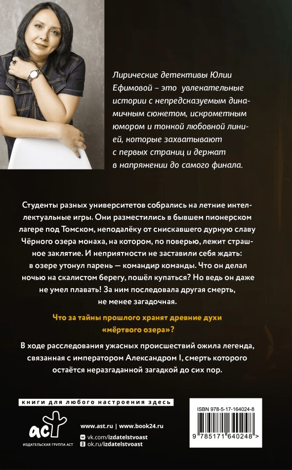 Students from different universities gathered for the summer intellectual games. They settled in a former pioneer camp near Tomsk, not far from the infamous Black Lake monk, on which, according to legend, lies a terrible spell. And the troubles did not take long: in the lake drowned the guy – the commander of the team. What was he doing at night on the rocky shore, going swimming? But he couldn't even swim! It was followed by another death, no less mysterious. What are the secrets of the past kept by the ancient spirits of the “dead lake”? During the investigation of terrible incidents came to life the legend associated with Emperor Alexander I, whose death remains an unsolved mystery to this day.