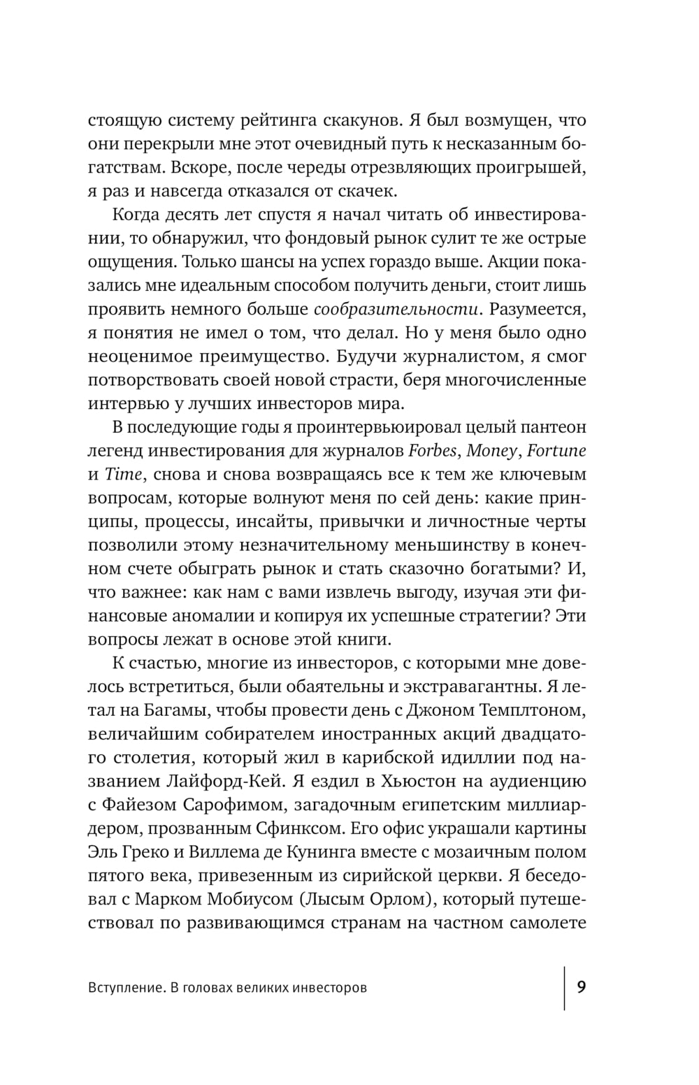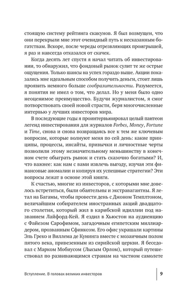 We are usually skeptical of millionaire advice, "get out of your comfort zone" admonitions, and stories of who got rich and how. Obviously, business sharks are brilliant, but can their success be repeated? The author of this book has a special approach. William Green, a well-known journalist for The New Yorker, Time, Fortune, Forbes, and The Economist, conducted hundreds of interviews with famous superinvestors and found that the key ideas of wealth creation are applicable in all spheres.