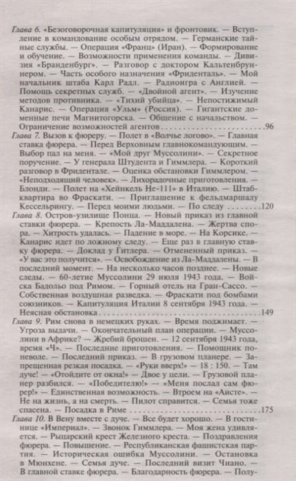 Otto Skorzeny, SS Obersturmbannführer, a professional intelligence officer who carried out secret missions for Hitler in various countries, is one of the most famous and mysterious personalities of World War II. In his memoirs, he talks about his participation in battles on the Eastern Front, about how he became the leader of a special forces unit and in this capacity carried out an operation to free Mussolini, which brought him worldwide fame and the Knight's Cross. The action cost great sacrifices, but who counts the losses when the goal is achieved! Skorzeny describes with talent, vividly and in detail the operations he developed, which he himself led, although some of them failed miserably, which, however, did not affect his self-esteem. At the end of the war in May 1945, he surrendered to the Americans, and in July 1948 he carried out another operation - he organized his own escape from a prisoner of war camp. This date ends the memoirs of super-saboteur Otto Skorzeny. The book is published uncut for the first time.