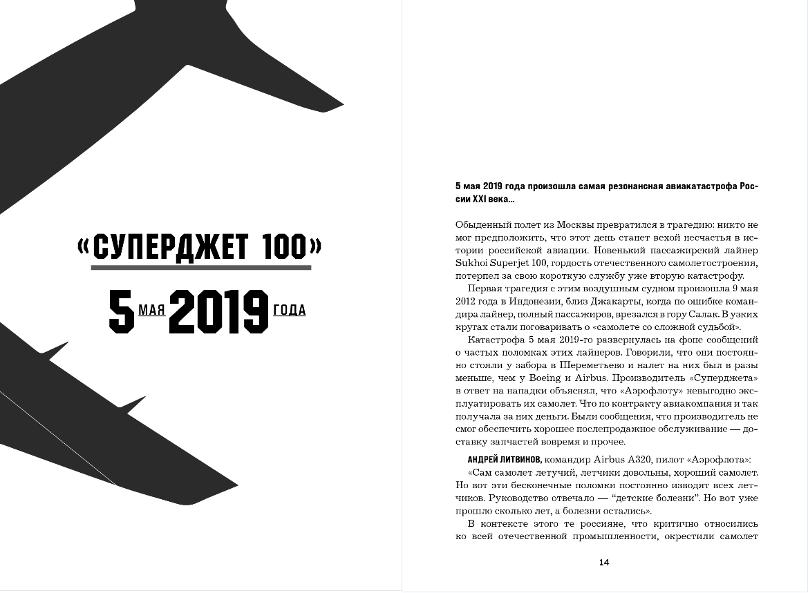 The book contains a detailed analysis of various incidents, including Kazan, Perm, Anapa-St. Petersburg, and other high-profile cases. The reader will see what happened in the cockpit in the final seconds and understand the logic behind the crew's actions.