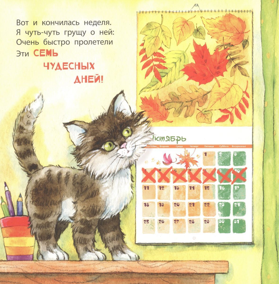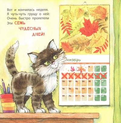 The little hero of this book was busy all week long: every day he had something important and useful to do. The boy was happy to help everyone he could - babies, grandma, birds - and he even saved someone! And for the next week he had already prepared a new list of good deeds.