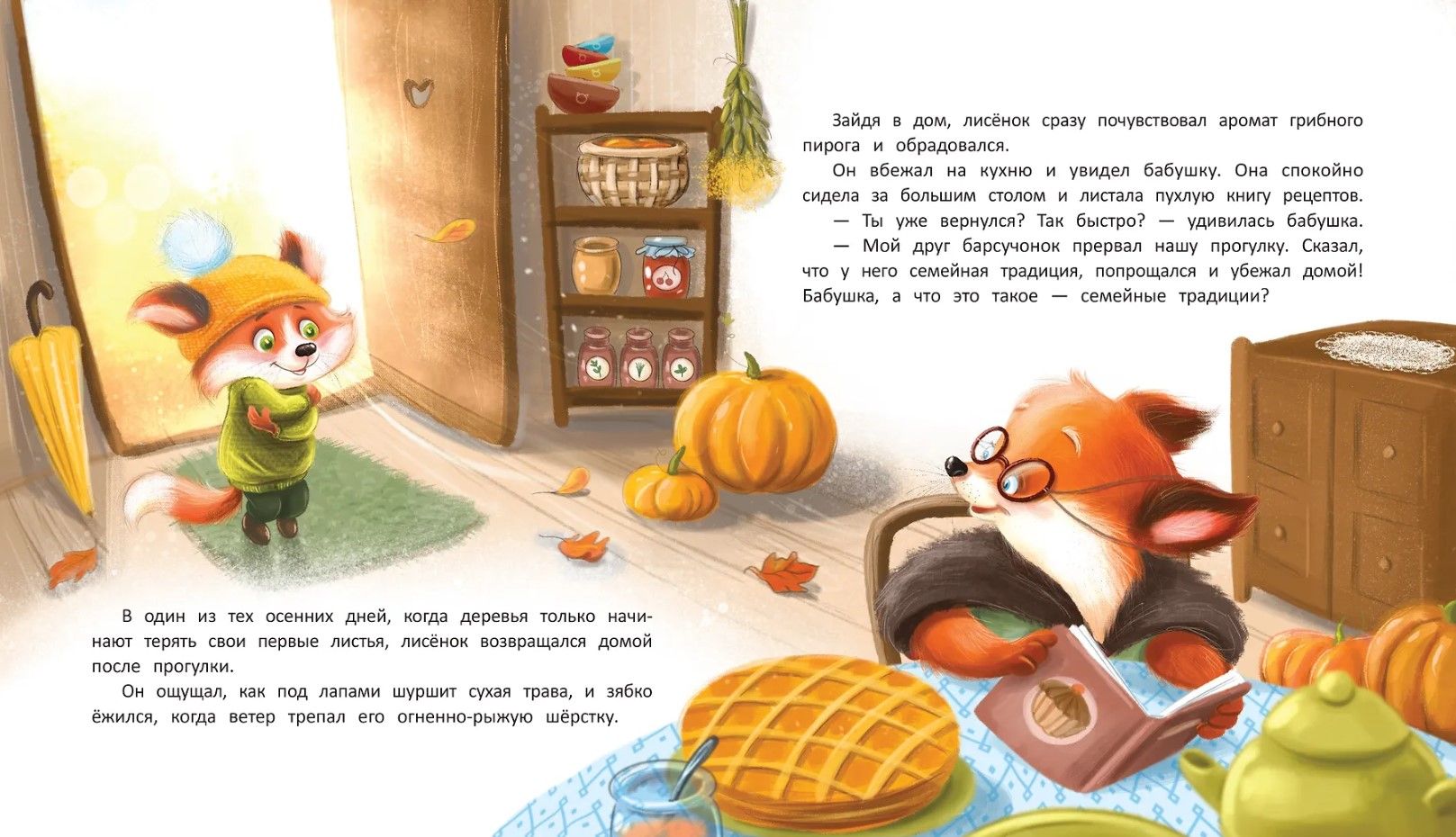 An excited little fox runs home. He's learned that his friend has a family tradition, and he's eager to understand what it is. Seeking an answer, the little fox turns to those closest to him: his mom, dad, grandma, and grandpa—and each of them gives him their own answer. However, the most important discovery comes from the little fox himself.