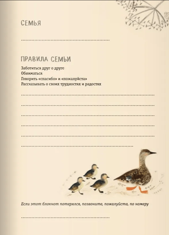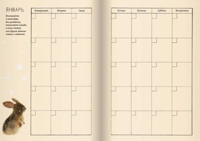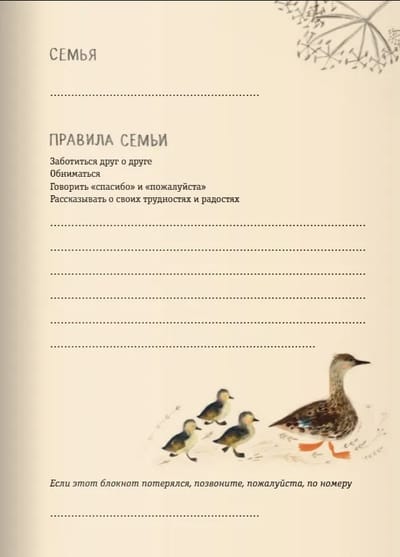 A cozy notebook for family plans with quotes from Mikhail Yasnov's favorite poems and tender illustrations by Karina Kino. Inside are games and tasks for family evenings and lined pages for writing down thoughts and ideas. And also a drop of usefulness - habit trackers to mark small victories, and a calendar for planning holidays and other important events.