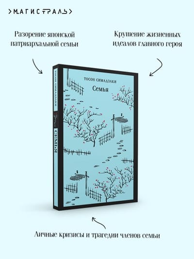"Family" is the story of the ruin of a Japanese patriarchal family, closely intertwined with the collapse of the protagonist's ideal of life. Each family member experiences their own personal crises and tragedies. Toson Shimazaki masterfully depicts the characters' complex inner experiences and relationships, deeply analyzing the inner worlds of his characters, their feelings, and doubts.