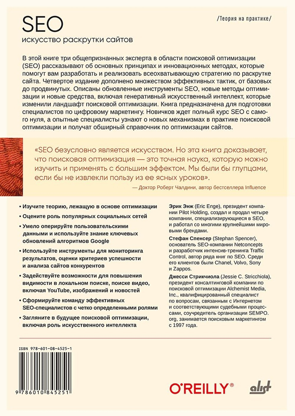 The fourth edition is supplemented with many effective tactics, from basic to advanced. It describes updated SEO tools, new optimization methods and new tools, including generative artificial intelligence, which have changed the landscape of search engine optimization. Beginners will find a full SEO course from scratch, and experienced specialists will learn about new mechanisms in the practice of search engine optimization and receive an extensive SEO specialist's handbook.