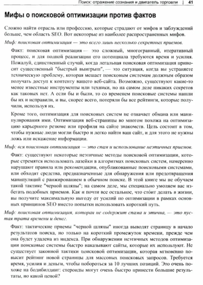A complete and detailed guide to search engine optimization (SEO) for website promotion specialists of all levels. It covers the basics of how search engines work and the goals of optimization. It consistently examines the most important aspects of SEO for business, starting with website development, keyword selection, content creation and ending with vertical optimization with efficiency analysis and subsequent website redesign. Separate chapters are devoted to the tasks of SEO training, creating a competent team of SEO specialists and the prospects for SEO development.