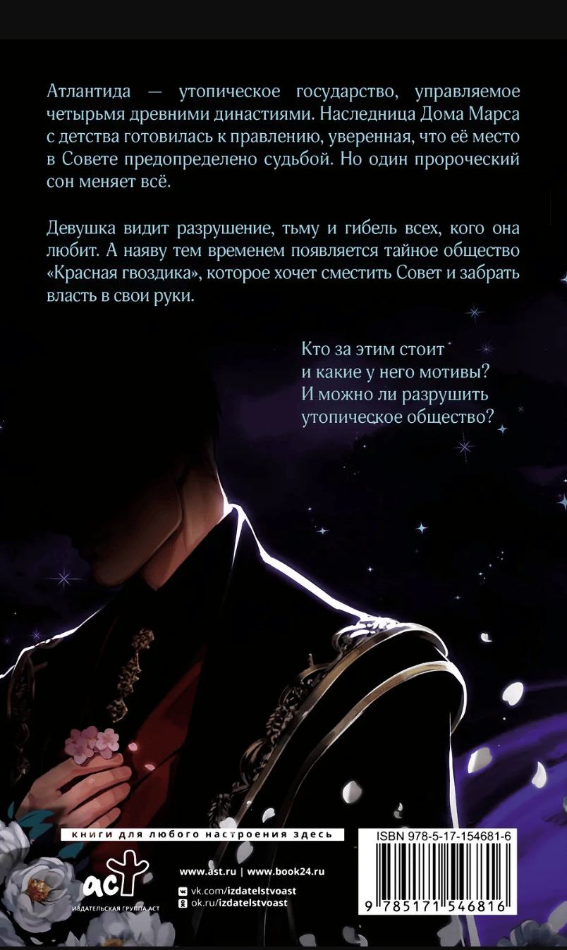 Atlantis is a utopian state ruled by four ancient dynasties. The heiress of the House of Mars has been preparing for rule since childhood, confident that her place on the Council is predetermined by fate. But one prophetic dream changes everything. The girl sees destruction, darkness, and the death of everyone she loves. Meanwhile, in reality, a secret society, the Red Carnation, appears, wanting to overthrow the Council and take power into its own hands. Who is behind this and what are their motives? And is it possible to destroy a utopian society?