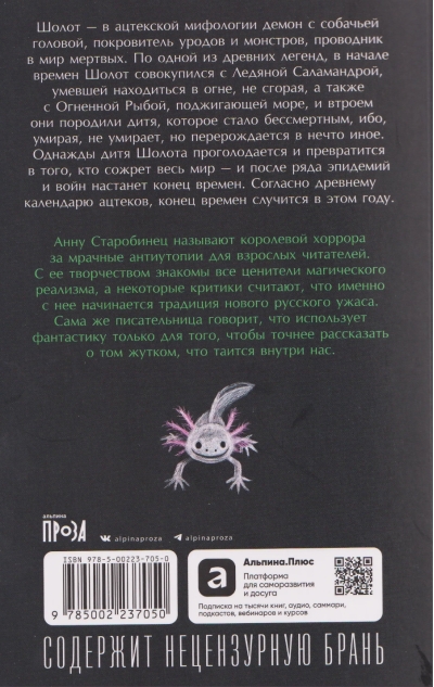 Anna Starobinets is called the queen of horror for her dark dystopias for adult readers. Her work is familiar to all connoisseurs of magical realism, and some critics believe that she is the originator of the tradition of new Russian horror. The writer herself says that she uses fiction only to tell more accurately about the terrible things that lurk within us.