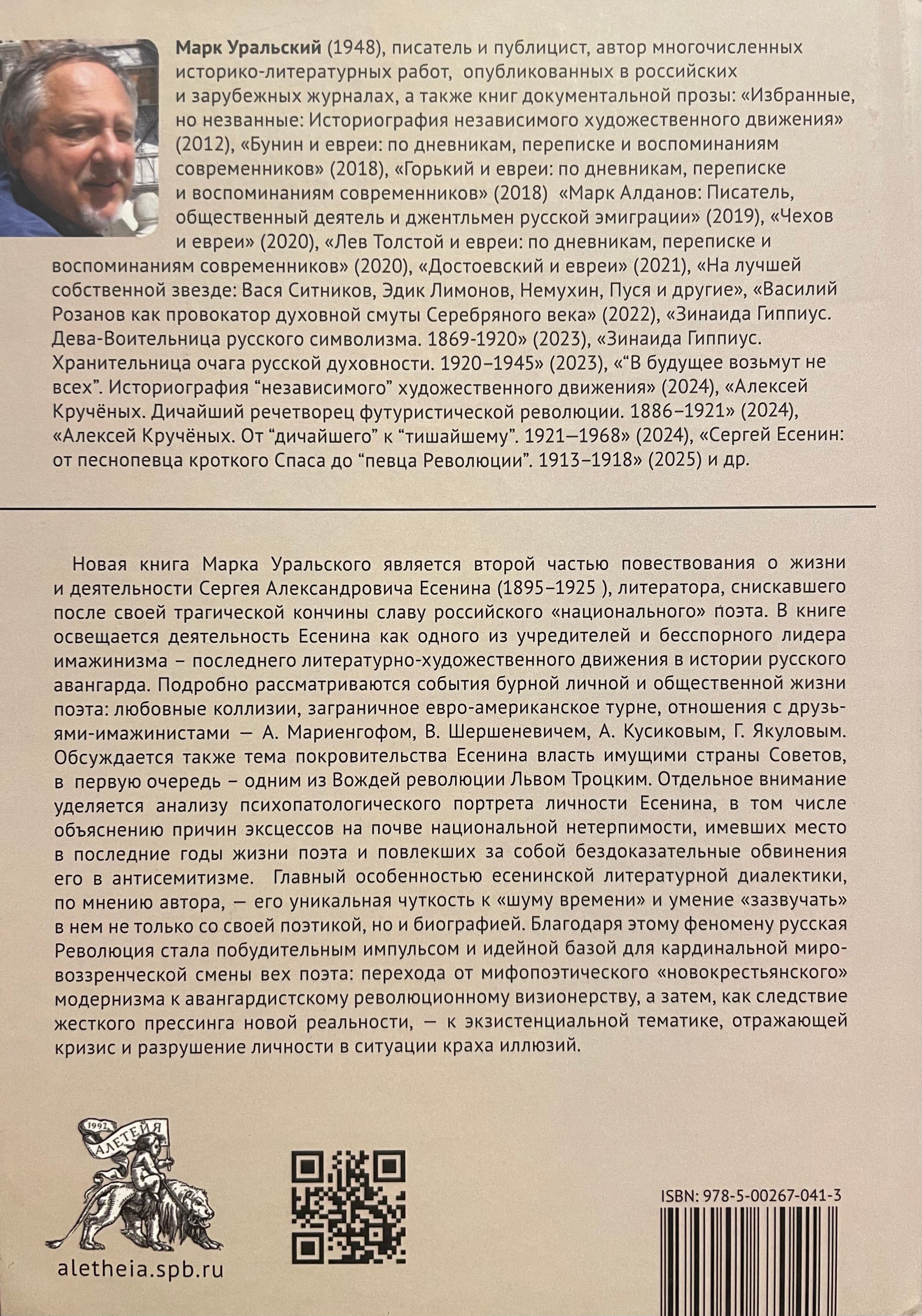 The second book in Mark Uralsky's Sergei Yesenin dilogy is devoted to the poet's post-revolutionary life and work (1918–1925). Drawing on a large body of documentary material and the memoirs of his contemporaries, it illuminates Yesenin's literary activity as one of the founders and undisputed leader of Imagism—the last Russian avant-garde literary and artistic movement. Events from the poet's turbulent personal and public life are examined and discussed in detail: his love affairs, his Euro-American tour abroad, his relationships with friends, as well as with the supreme leaders of the Soviet Union, primarily with Yesenin's patron, Leon Trotsky, one of the leaders of the October Revolution. Special attention is devoted to an analysis of Yesenin's psychopathological personality, including an explanation of the causes of the excesses motivated by national intolerance that occurred in the poet's final years and led to accusations of anti-Semitism.