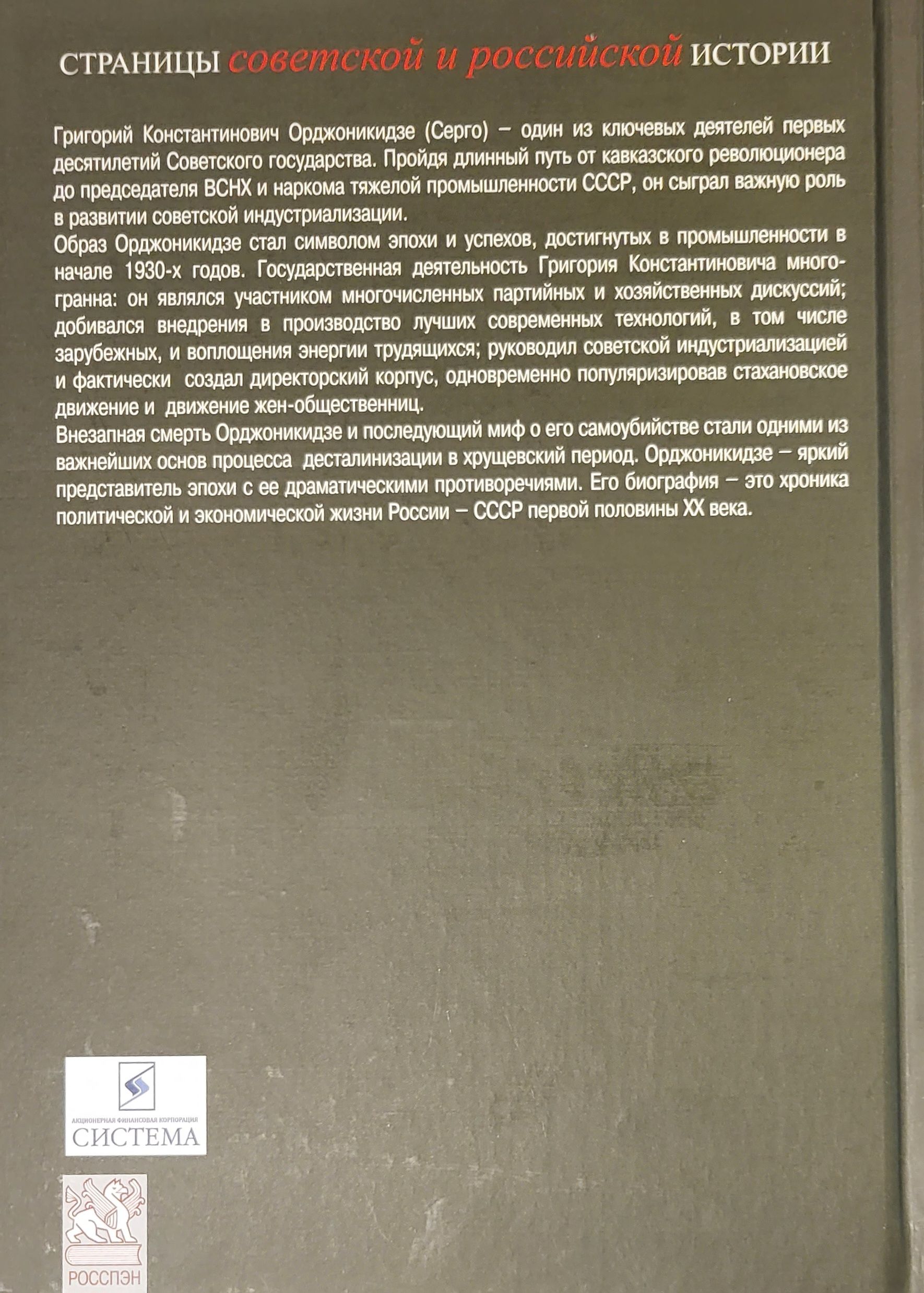 Grigory Konstantinovich Ordzhonikidze (Sergo) was one of the key figures of the first decades of the Soviet state. Having come a long way from a Caucasian revolutionary to chairman of the All-Union People's Commissariat of National Economy and Commissar of Heavy Industry of the USSR, he played an important role in the development of Soviet industrialization. Ordzhonikidze's image became a symbol of the era and the successes achieved in industry in the early 1930s. Grigory Konstantinovich's state activity is multifaceted: he was a participant in numerous party and economic discussions; he achieved the introduction of the best modern technologies, including foreign ones, into production and embodied the energy of workers; he led Soviet industrialization and actually created the director corps, while popularizing the Stakhanov movement and the movement of women social workers. Ordzhonikidze's sudden death and the emergence of the myth of his suicide became one of the most important foundations of the process of de-Stalinization in the Khrushchev period. Ordzhonikidze is a vivid representative of the era with its dramatic contradictions. His biography is a chronicle of political and economic life of Russia - USSR of the first half of the twentieth century.