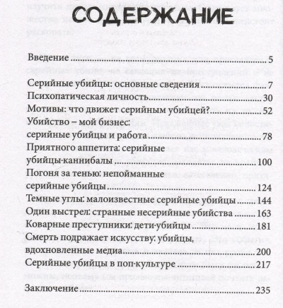 In addition to up-to-date information on current cases, you will read about 11 different categories of killers, learn shocking facts about little-known crimes and the most famous villains.