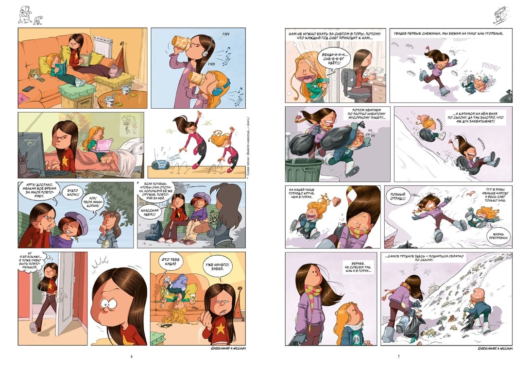 Today they're cooking their signature dish for Dad—a combination of everything he loves. Genius, right? And tomorrow, Marin smears Wendy's face with stinky cheese—with purely good intentions. Today, they're sliding down a snowy hill in garbage bags, and tomorrow, Wendy convinces Marin to shovel the snow from the driveway, hinting that Eeyore is buried under the snowdrifts.