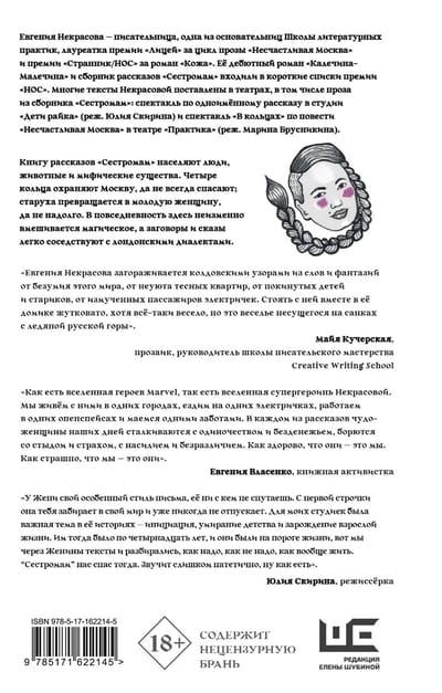 The book of stories "Sestromam" is populated by people, animals and mythical creatures. Four rings guard Moscow, but not always save it; an old woman turns into a young woman, but not for long. The tale invariably intervenes in everyday life, and plots and jokes easily neighbor with London dialects.