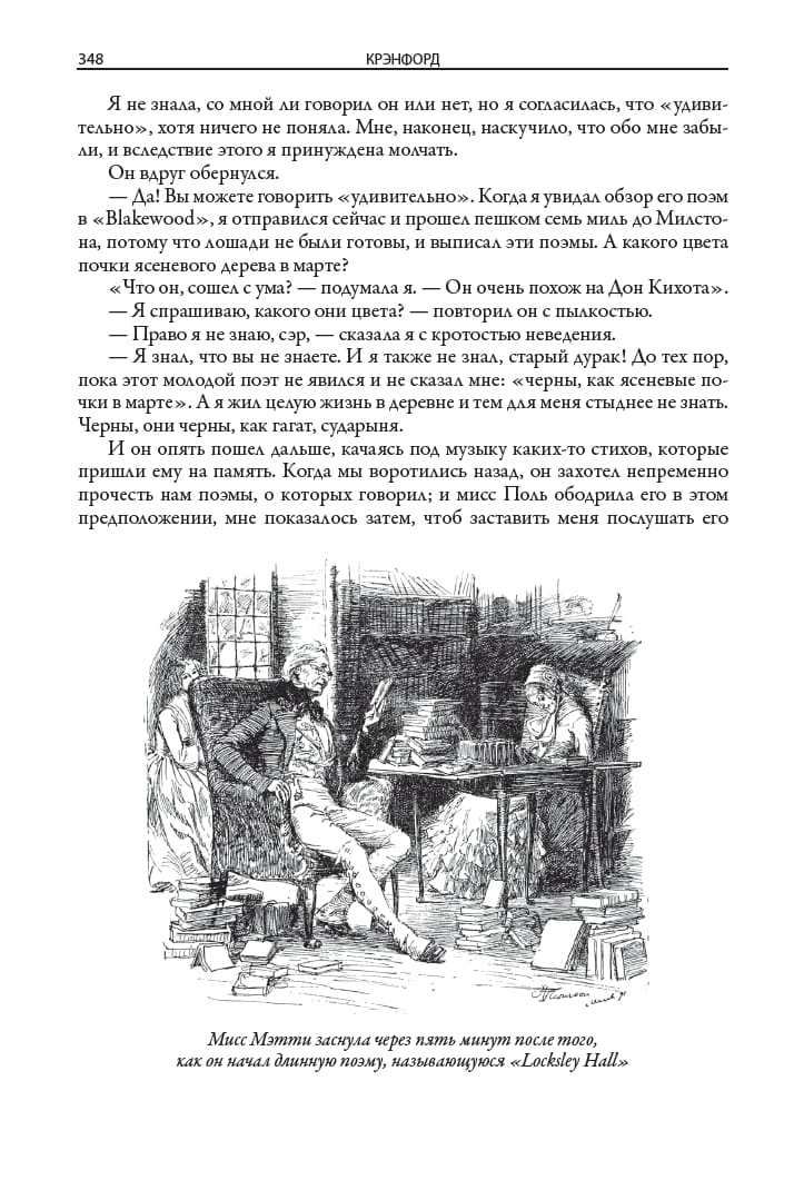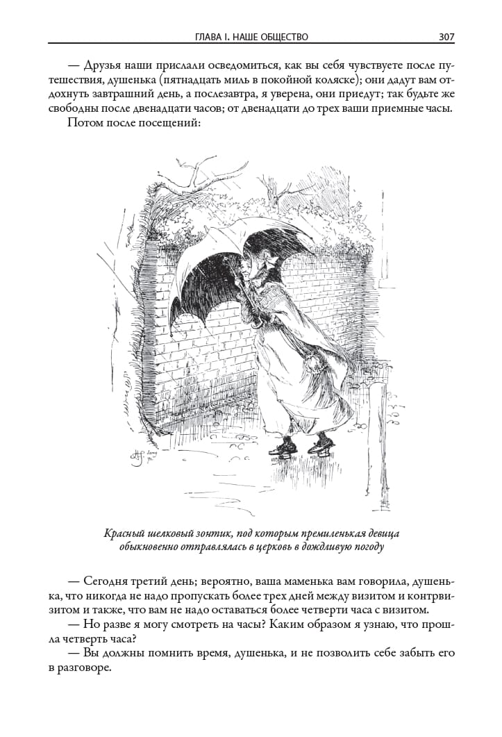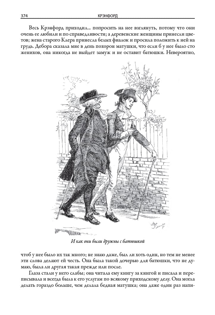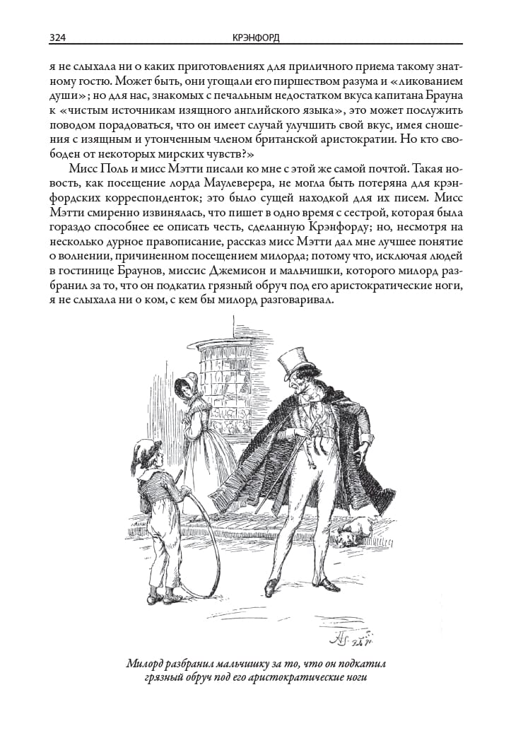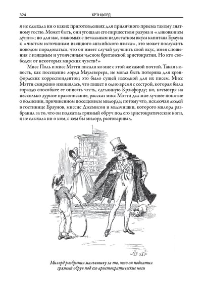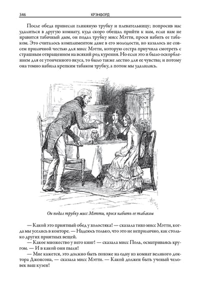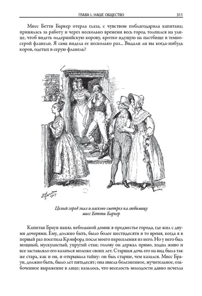 This book includes two of the most famous novels by the Victorian-era English novelist Elizabeth Gaskell (1810-1865). The novel "Cranford," translated from issues 7-9 of the journal "Otechestvennye Zapiski" in 1855, describes the life of a fictional English town. The novel North and South, translated from issues 5-6 of The Russian Herald in 1856, contrasts the dynamic life in the north of England with its measured flow in the south. The edition is decorated with drawings by George du Maurier (1834-1896) and Hugh Thomson (1860-1920). Along with Charles Dickens, William Thackeray, and Charlotte Brontë, Victorian novelist Elizabeth Gaskell belongs to a brilliant line of English novelists. She married in 1832 and moved to Manchester, spending the rest of her life there. This industrial city, according to the writer herself, she imagined her "fiery, terrible, smoky, vile Babylon". The first major work of Gaskell - the novel "Mary Barton" - was devoted to the realities of harsh Manchester life. In its problematics, this novel was reminiscent of Dostoevsky's "Crime and Punishment". In the novel "North and South" Gaskell contrasts the dynamic industrial activity in the north of England measured flow of life in the south of the country. The writer was attracted by the idyllic pictures of the "good old England", which she saw in the days of her childhood. Gaskell with love and a fair share of humor reproduces these pictures in his novel "Cranford". This is the name of her fictional small old-school town, which reigns patriarchal mores and inhabited by very determined women. In "Cranford" reflected the writer's nostalgia for the melted in the mists of time distant country of her childhood and youth. This novel in its style and soft, friendly humor resembles the prose of Dickens. The writer's friend Charlotte Brontë noted that "Cranford" is a lively, expressive, energetic, wise and at the same time kind and indulgent work. The edition is adorned with drawings by two British artists, George du Maurier and Hugh Thomson. Du Maurier was born in Paris in 1834, but his parents soon left France and settled in England. George first studied chemistry at University College London, but then gave himself entirely to drawing. He soon became a famous cartoonist, who has long collaborated with the British satirical magazine "Punch". Du Maurier was also engaged in illustrating books. Due to vision problems he had to give up drawing, and in the second half of his life Du Maurier wrote several novels in the "Gothic style". Hugh Thomson was born in 1860 in Northern Ireland. He did not receive a systematic artistic education, but this did not prevent him in his lifetime to gain fame as a classic of book illustration. Thomson managed to illustrate hundreds of books, among which were novels by Dickens, Thackeray, Austen, Shakespeare's plays. The public admired how accurately in his drawings he conveys the details of interiors, landscapes, clothing characters and their characters. All these features are inherent in his drawings for the novels of Elizabeth Gaskell.