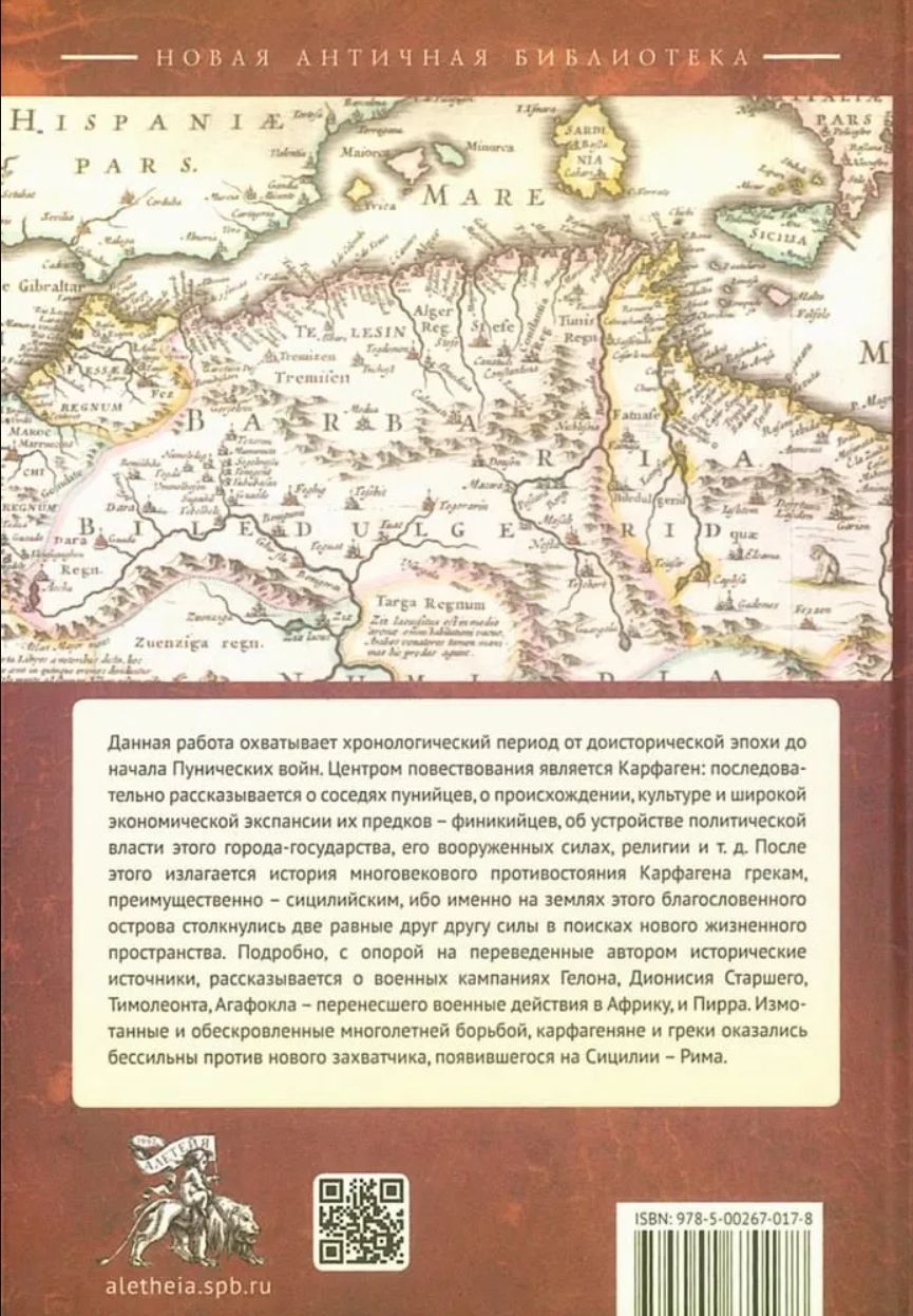This work is the first of two devoted to the history of North Africa, covering the chronological period from prehistory to the beginning of the Punic Wars. The narrative centers on Carthage: it successively describes the Punics' neighbors, the origins, culture, and extensive economic expansion of their Phoenician ancestors, the political structure of this city-state, its armed forces, religion, and so on. Following this, it recounts the story of Carthage's centuries-long confrontation with the Greeks, primarily Sicilian, for it was on the lands of this blessed island that two equally equal powers clashed in search of new living space. Drawing on historical sources translated by the author, it recounts in detail the military campaigns of Gelon, Dionysius the Elder, Timoleon, Agathocles—who carried the war to Africa—and Pyrrhus. Exhausted and bled dry by years of fighting, the Carthaginians and Greeks found themselves powerless against the new invader that appeared in Sicily – Rome.