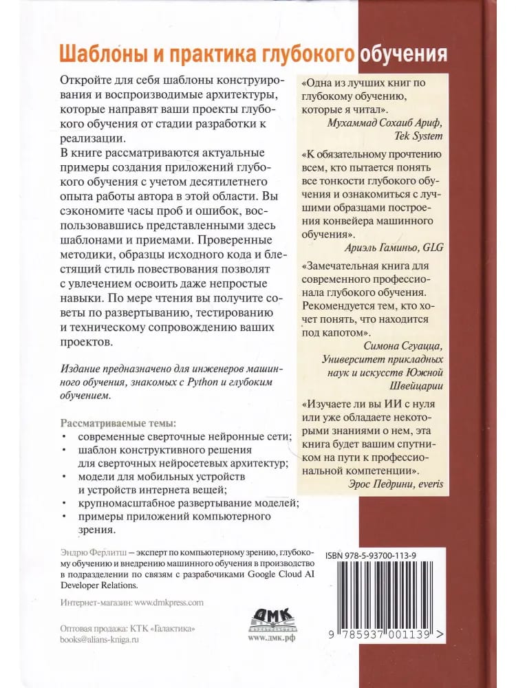 This book covers actual examples of building deep learning applications, drawing on the author's decades of experience in the field. You'll save hours of trial and error by taking advantage of the patterns and techniques presented here. Proven techniques, source code samples, and a brilliant narrative style will make learning even challenging skills fun. As you read, you'll get tips for deploying, testing, and maintaining your projects. The publication is intended for machine learning engineers familiar with Python and deep learning.