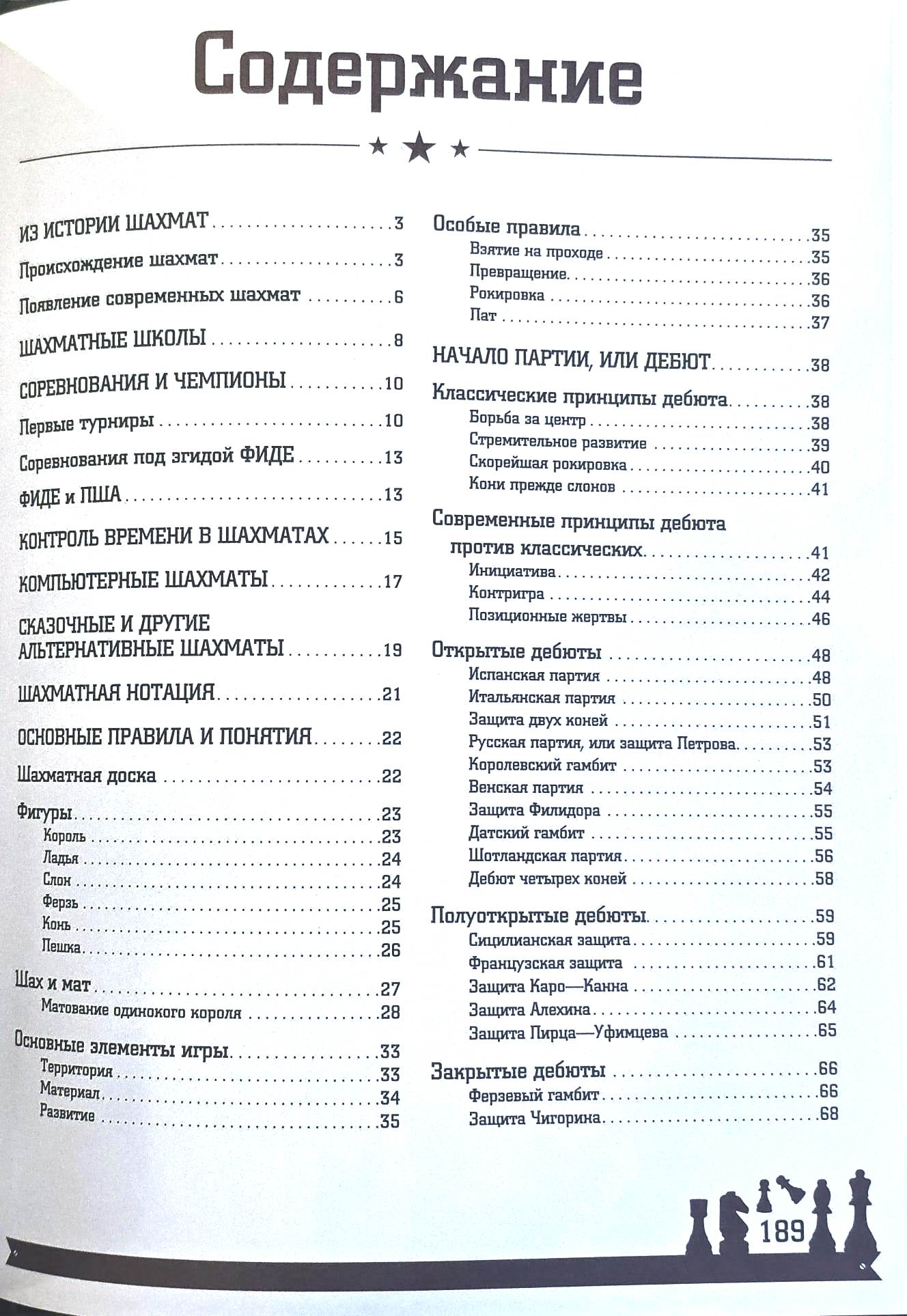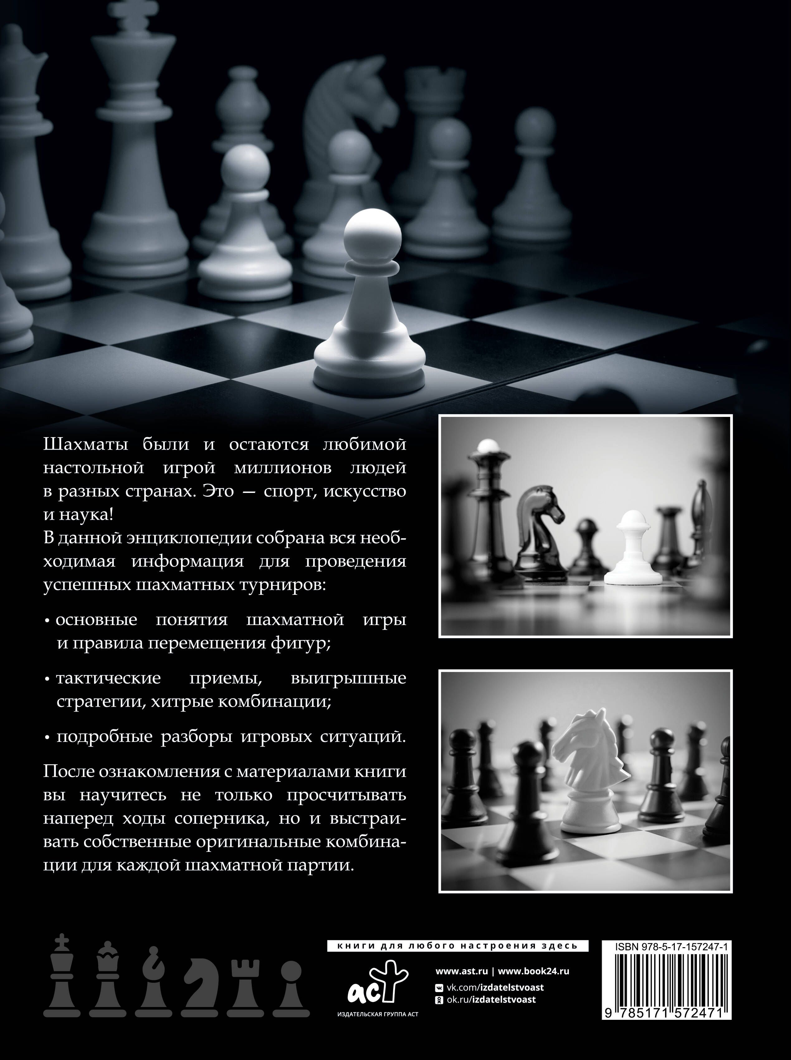 Chess is a passion for millions of people around the world. It's also a sport, an art, and even a science. This book will help you master the basics of this popular board game. Terminology, key concepts and rules of the game, the most winning tactical moves and combinations, and other equally useful information for every chess player—all of this is presented within the pages of this encyclopedia. Advice from renowned grandmasters and illustrated chess game examples will allow you to develop your own strategy and emerge victorious from the most difficult chess games, anticipating your opponents' moves and employing secret tactical techniques.