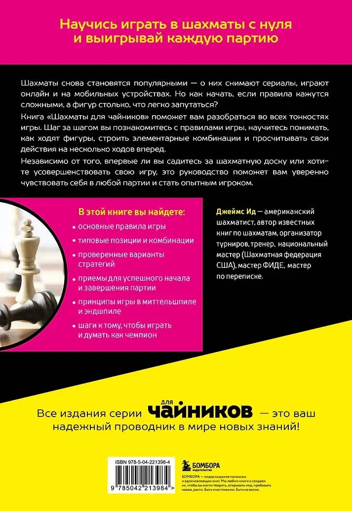 The book "Chess for Dummies" will help you understand all the intricacies of the game. Step by step, you'll learn the rules, understand how the pieces move, construct basic combinations, and plan your moves several moves ahead.