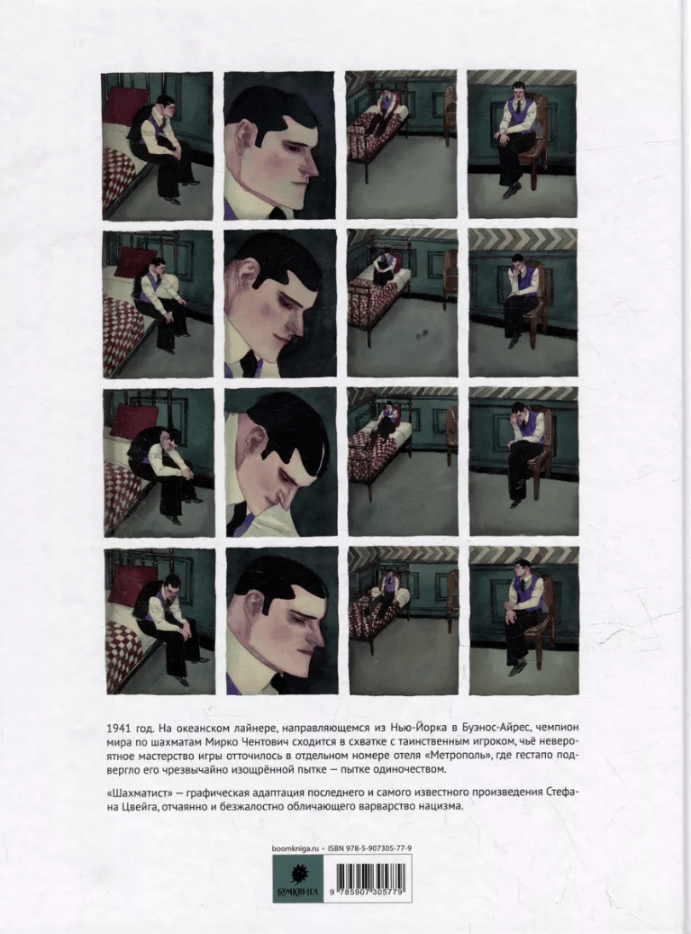 "Chess Player" is a graphic adaptation of Stefan Zweig's latest and most famous work, which desperately and ruthlessly denounces the barbarism of Nazism.