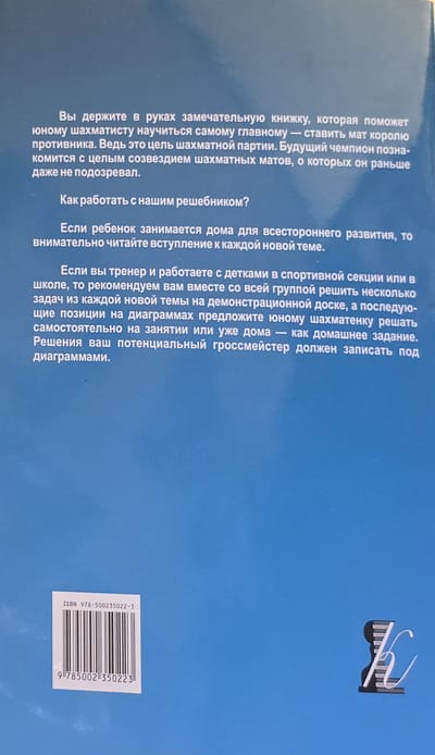 You're holding in your hands a wonderful book that will help a young chess player learn the most important thing—checkmate the opponent's king. After all, that's the goal of a chess game. The future champion will become familiar with a whole constellation of checkmate moves they never even knew existed.