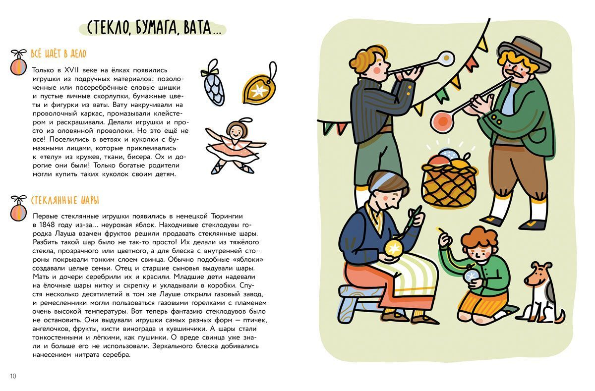 This book contains curious facts from the history of Christmas decorations. It also has tips on how to make some of them with your own hands. And you are also in for a surprise! Unfold the super cover and you'll see the outline of a Christmas tree. Hang it on the wall, turn it into a green beauty with tinsel and decorate it with your Christmas crafts.