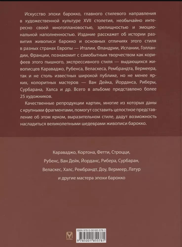 High-quality reproductions of paintings, many of which are given with large fragments, will help to make a complete picture of this bright, expressive style, will give the opportunity to enjoy the magnificent masterpieces of Baroque painting.