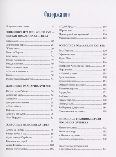 The art of the Baroque era, the main style direction in the artistic culture of the 17th century, is extremely interesting for its multidimensional, spectacular and emotional content. The edition will tell about the history of the development of Baroque painting and the main differences of this style in different European countries - Italy, Flanders, Spain, Holland, France, will introduce you to the original work of the coryphets of this lush, expressive style - outstanding painters Caravaggio, Rubens, Velazquez, Rembrandt, Vermeer, and not so well-known to the general public, but no less bright, colorful masters - Van Dyck, Jordans, Ribera, Surbaran, Hals and others. In total, the album presents more than 25 artists.