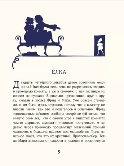 Color and silhouette illustrations by Nadezhda Frolova and the classic translation by Irina Tatarinova will give the reader a festive mood and help to immerse themselves in the wonderful world of one of the most famous New Year's fairy tales in the world, which was written a couple of centuries ago by the German romantic E. T. A. Hoffmann.