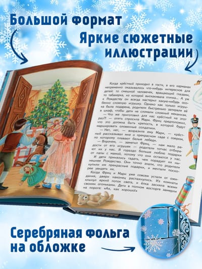 Reading "The Nutcracker" at New Year's is a family tradition for many. This captivating tale of an unusual gift found under the tree will help you immerse yourself in the festive spirit. The talented artist Anastasia Basyubina created special, elegant illustrations for this gift edition, making the book incredibly enjoyable to read and the illustrations accompanying the story.