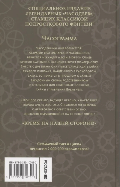 The watchmaking world is in turmoil: Astragor, the enemy of the Eflar watchmakers, has returned and seeks revenge. Norton Ognev has challenged him. Vasilisa wants to help her father. Together with her friends, she attempts to unravel the mystery of the rusty fragment found in the Broken Castle, learns new watchmaking wisdom, and discovers the secrets of time management. The past is hidden, the future is unclear, and the present is sometimes very cruel. Will the girl cope with the incredible responsibility that has suddenly fallen on her young shoulders?