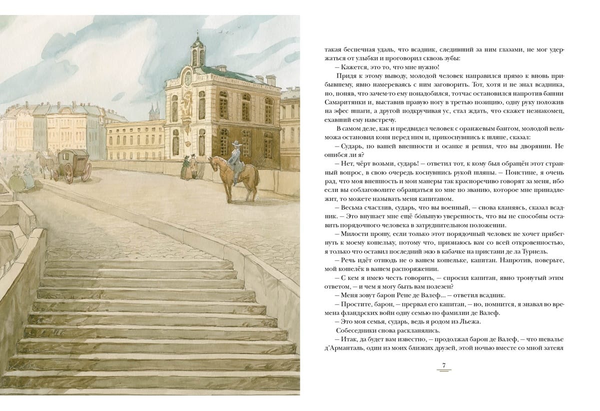 "Chevalier d'Armantal" - one of the most fascinating historical-adventure novels by Alexandre Dumas. The events of the book unfolds in France of the XVIII century, torn by political contradictions. The protagonist, a young nobleman Raoul d'Armanthal, is drawn into a conspiracy against the regent of France - the Duke of Orleans. The young man rushes into the maelstrom of palace intrigue: he is waiting for desperate duels, fighting with treacherous enemies and... meeting with the lovely Bathilde, who has won the heart of the Chevalier. But will the two lovers never find happiness - after all, one of them must be executed.... The bright and voluminous illustrations by artist Anna Khopta realistically convey the atmosphere of the book.