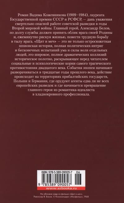 The novel by the famous Soviet writer Vadim Kozhevnikov (1909-1984), winner of the State Prize of the USSR and RSFSR, - a tribute to the deadly dangerous work of Soviet intelligence during the Second World War. The main character, Alexander Belov, by duty must take the guise of an enemy of his homeland and, every minute risking his life, to lead a difficult struggle behind enemy lines. "Shield and Sword" - it is not only a sharp spy story, full of political intrigue and endless tests of intelligence and willpower of individuals, it is a wide, full of dramatic collisions of historical canvas, revealing to the reader the social and psychological roots of the most tragic confrontation of the twentieth century.