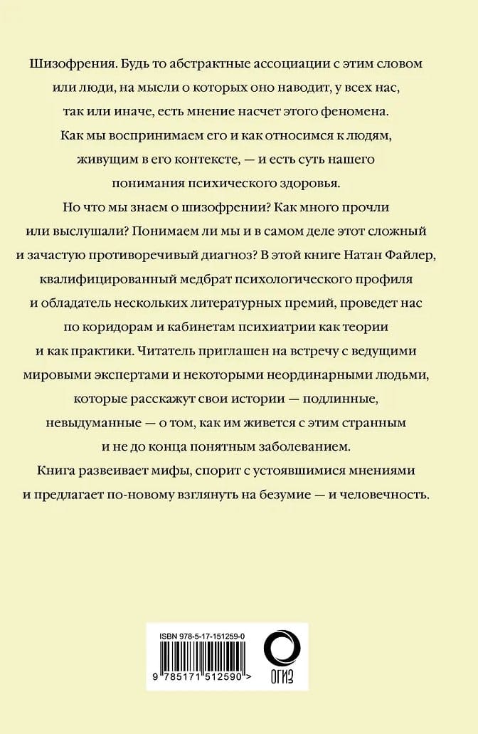 Schizophrenia. Whether it's the abstract associations with the word or the people it evokes, we all have an opinion about this phenomenon. How we perceive it and how we relate to those living within it is at the core of our understanding of mental health. But what do we know about schizophrenia? How much have we read or heard? Do we truly understand this complex and often contradictory diagnosis? In this book, Nathan Filer, a qualified nurse psychologist and winner of several literary awards, takes us through the halls and offices of psychiatry, both theoretical and practical. Readers are invited to meet leading world experts and some extraordinary individuals who will share their stories—true, unfeigned—about living with this strange and incompletely understood illness. The book dispels myths, challenges established opinions, and offers a new perspective on madness—and humanity.