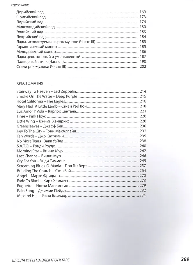 The School's teaching materials are aimed at mastering and refining modern electric guitar technique and exploring examples of rock improvisation by great guitarists of the past and present: Jimi Hendrix, Eric Clapton, Jimmy Page, Kirk Hammett, Joe Satriani, and many other guitarists.