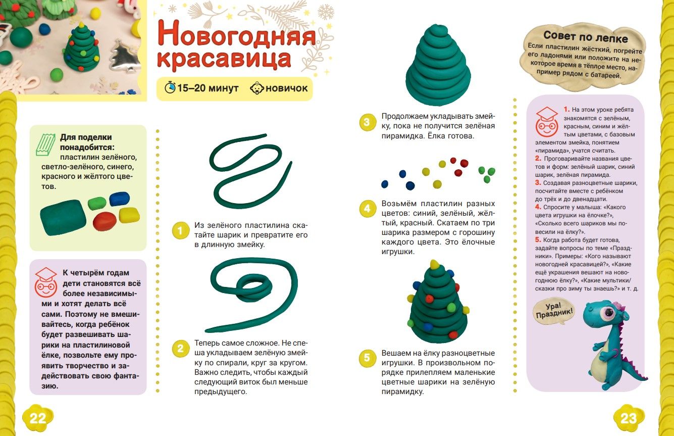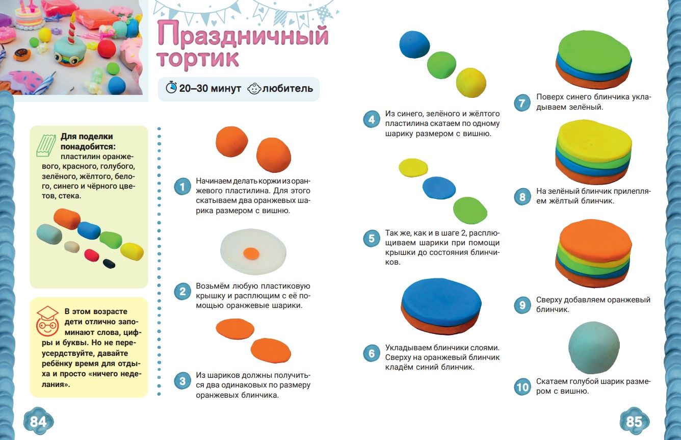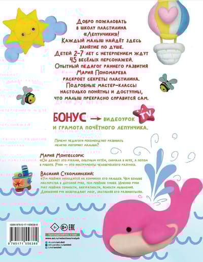 What could be more beneficial than play-doh?! Experts agree that modeling exercises develop fine motor skills, speech, thinking, and imagination, while also improving children's attention and memory. In this book, Maria Ponomareva has prepared 45 engaging activities that will not only provide wonderful time together but also help develop important skills. Each activity is accompanied by an indication of the difficulty level, recommended time, and tips on modeling and interacting with your child. Detailed master classes and original, colorful crafts make this book a valuable gift for children and parents. A nice bonus at the end is a video lesson and a certificate of honorary play-doh master.