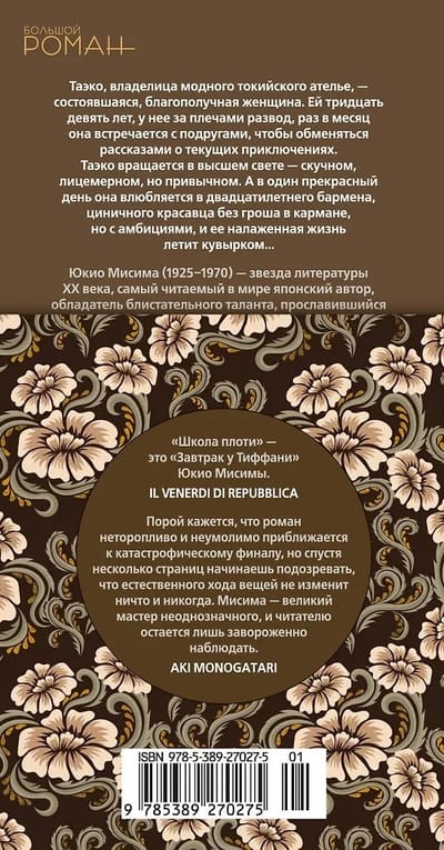 Taeko, the owner of a Tokyo tailor shop, is a successful, self-assured, and successful woman. She's thirty-nine years old, divorced, fashionistas line up to see her, and once a month she meets with friends to exchange stories of their current adventures, including romantic ones—not dizzying, but entertaining. Taeko moves in high society—boring, vain, hypocritical, but familiar. Then one day, she falls head over heels in love with a twenty-year-old bartender, a cynical, handsome man penniless but ambitious, and her well-established life is thrown into disarray...