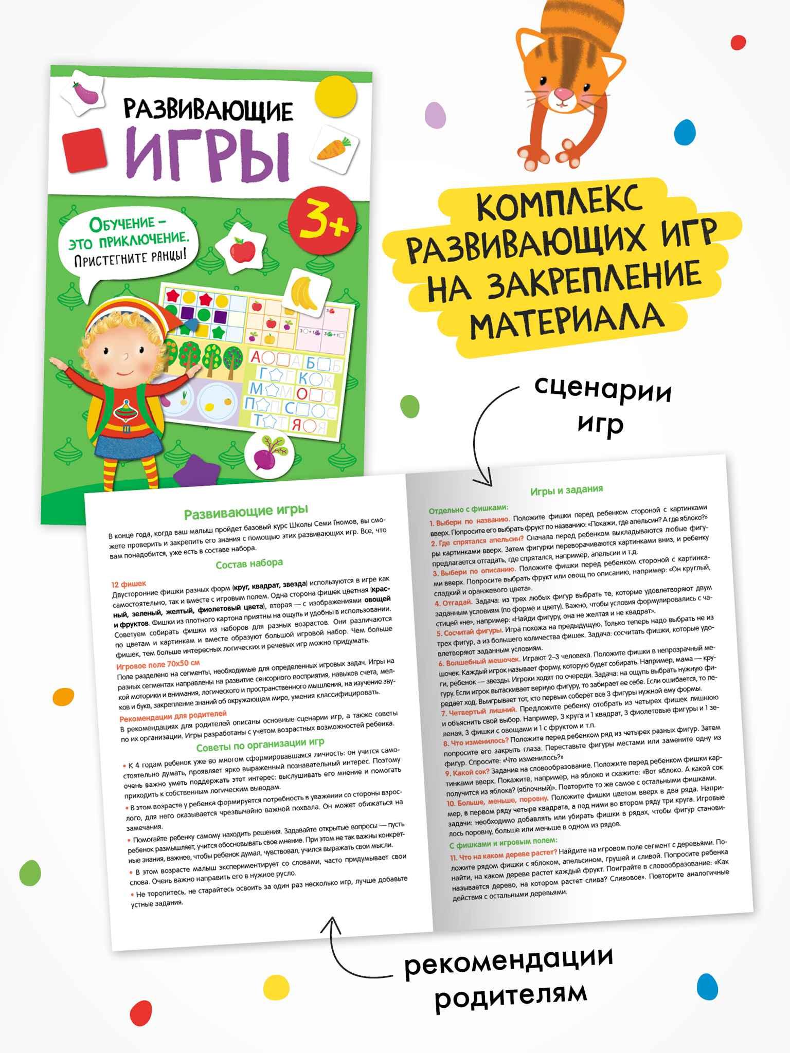 The system is designed to ensure that children receive the necessary knowledge at the right time. Therefore, all books in the School of the Seven Dwarfs are clearly age-appropriate and developed strictly with the child's abilities in mind. But most importantly, learning with a child is productive and enjoyable. Therefore, all tasks are structured from simple to complex and follow the principle of "development through play." Any adult can work with a child; no special knowledge or experience is required. The parent page in each book will explain what, how, and why should be developed at a given age.