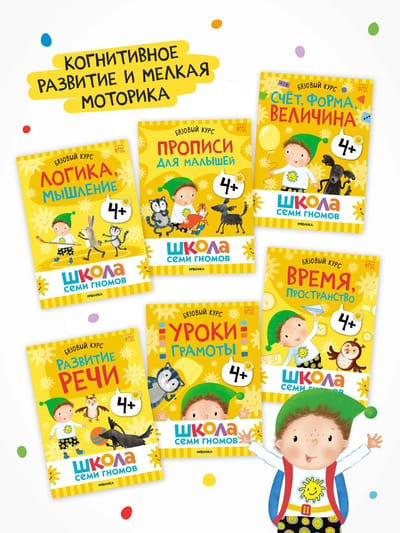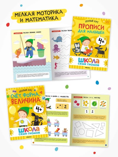 The system is designed to ensure that children receive the necessary knowledge at the right time. Therefore, all books in the School of the Seven Dwarfs are clearly age-appropriate and developed strictly with the child's abilities in mind. But most importantly, learning with a child is productive and enjoyable. Therefore, all tasks are structured from simple to complex and follow the principle of "development through play." Any adult can work with a child; no special knowledge or experience is required. The parent page in each book will explain what, how, and why should be developed at a given age.