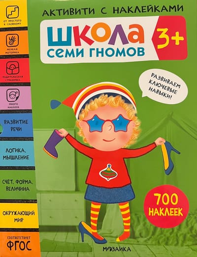 The "School of the Seven Dwarfs. Activity with Stickers" series is an entertaining addition to the basic course "School of the Seven Dwarfs", designed to develop preschoolers in key areas of study. By developing logical thinking, literacy and speech, children receive a solid foundation for future learning. Specially designed educational tasks and games in the set stimulate attention, develop fine motor skills and teach how to solve various problems.