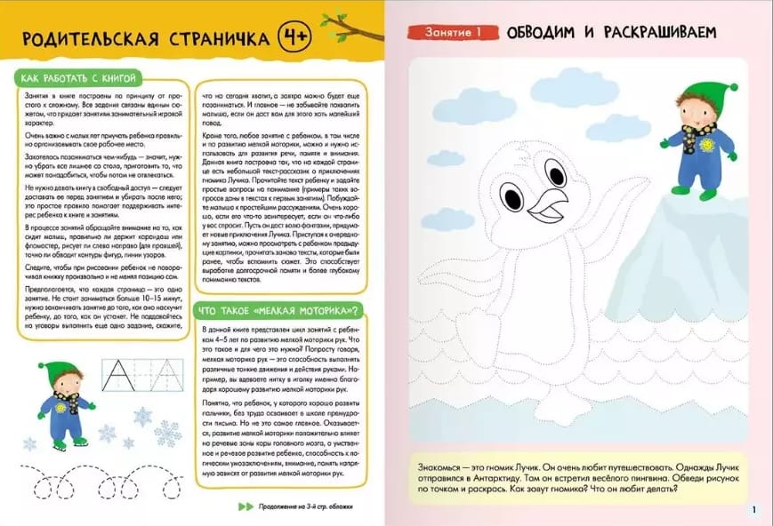 The system is designed in such a way that the child receives the necessary knowledge at the right time. Therefore, all the books in the School of the Seven Dwarfs have a clear age address and are developed strictly taking into account the age capabilities of the child. But the most important thing is that classes with the child give results and bring joy. Therefore, all tasks are built from simple to complex and follow the principle of "development through play". Any adult can work with a child, no special knowledge or experience is required. The parent page in each book will tell you what, how and why you need to develop at a given age.