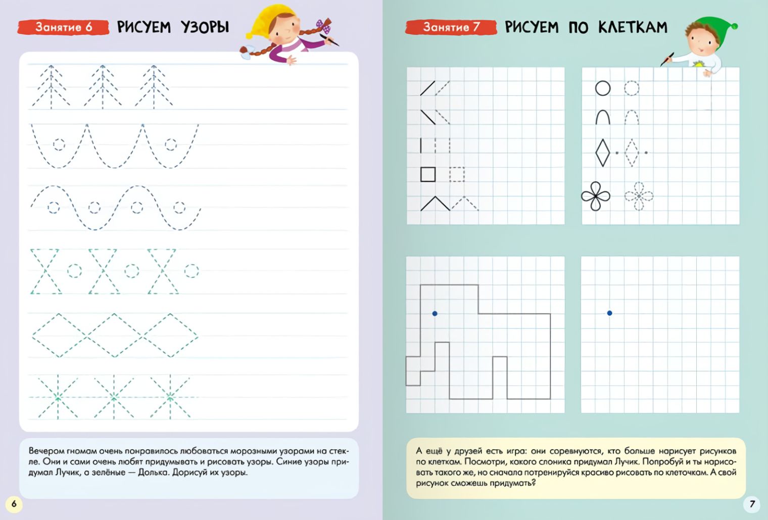 The School of the Seven Dwarfs is a system, not a set of books. The set of 6 books of the Basic Course is aimed at developing the child's cognitive abilities: cognitive interest, ability to think, analyze, draw conclusions.