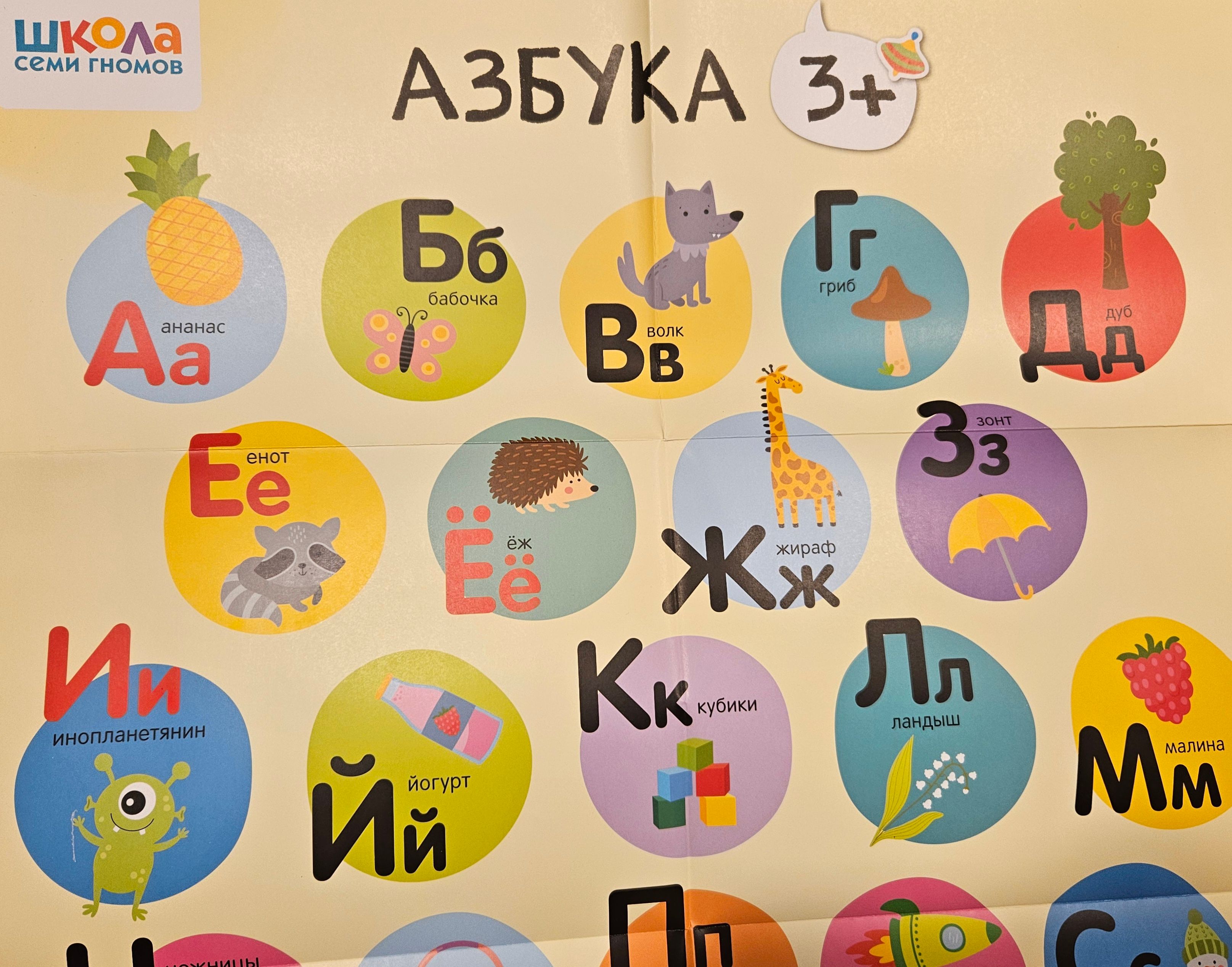 And it is also very difficult to get lost in the School of the Seven Dwarfs, because each age has its own color and its own character. During the entire training, the child is accompanied by seven Dwarfs - characters copied from children of the corresponding age. A three-year-old child is accompanied by the green color and the gnome Yula.