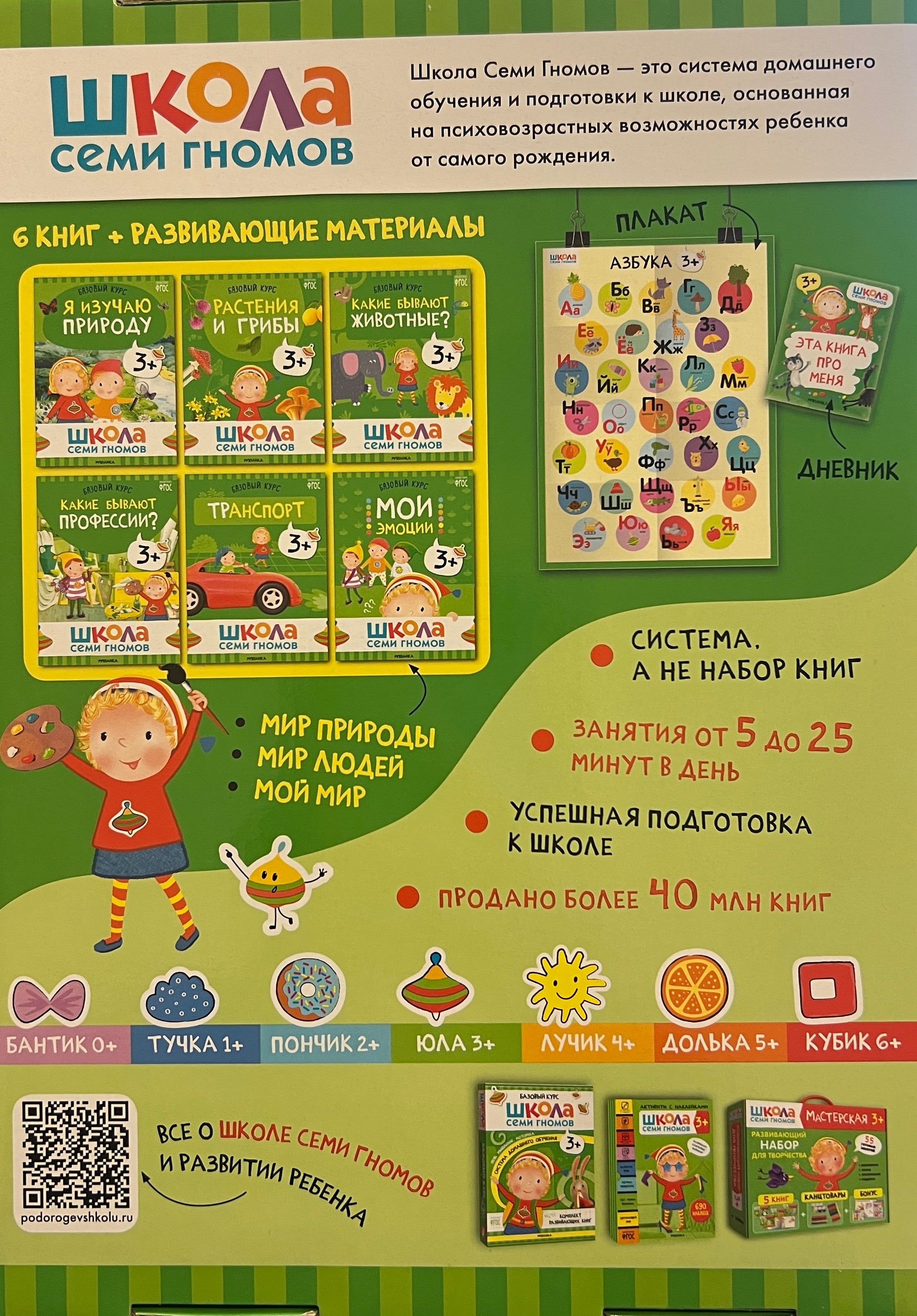 The School of the Seven Dwarfs is a system, not a set of books. This set of 6 books is aimed at familiarizing children with the world around them, its patterns and interrelations. The world around them can be divided into the natural world (animals and plants, seasons, weather phenomena), the world of people (professions, transport, subject environment, materials and their properties) and my world (emotions, relationships, the child's personality).