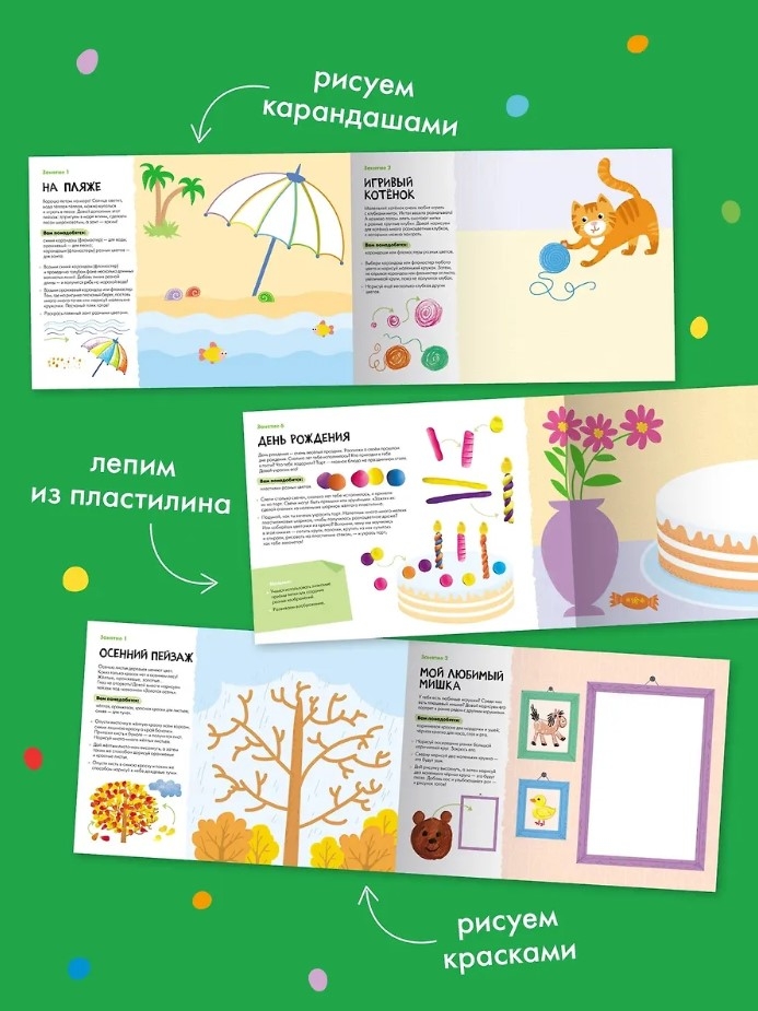 The set includes 5 albums with which the child will learn to create: