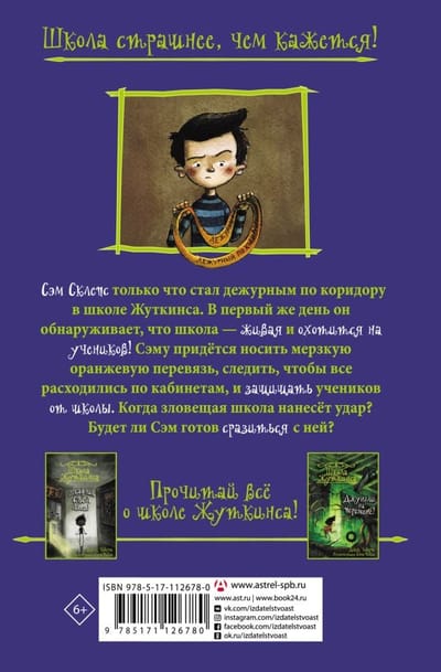 School is scarier than it looks! Sam Scleps has just become a hallway duty officer at a school called Zootkins. On his first day, he discovers that the school is alive and preying on the students! Sam will have to wear a nasty orange sling, make sure everyone disperses to their classrooms, and protect the students from the school. When will the sinister school strike? Will Sam be ready to fight it?